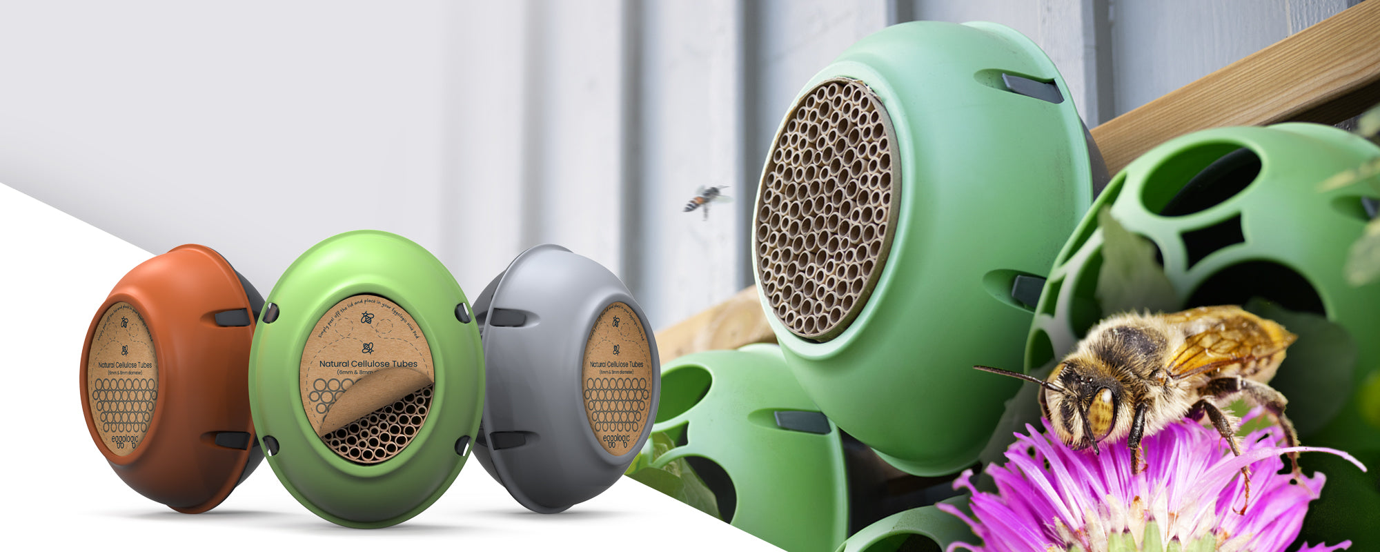 Our award-winning Hive pod (also commonly known as a bee hotel) provides a secure and moisture-free nesting habitat for a variety of solitary bees that are critical to a balanced garden and ecology. The unique Hive pod design includes our slide-in Tube Insert filled with 6mm and 8mm tubes. This 100% natural paper-based insert can be easily replaced seasonally as needed.